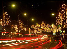 В новогоднем оформлении Киева используют, всю палитру средств, имеющихся в распоряжении