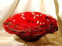 Вы можете отправить с курьером букет или корзину цветов, или сердце из разных