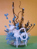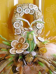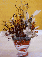 Здесь широко используются сочетания сухоцветов с самым разнообразным материалом.