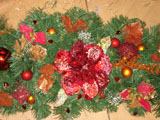 хвоей, цветами и новогодними атрибутами, висящая над праздничным столом.