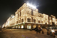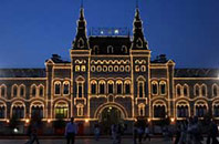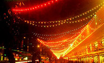 фасадов, мостов, в виде световых гирлянд между мачтами электрического освещения.