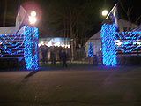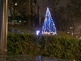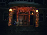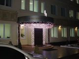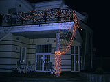 Примеры оформление светодиодными гирляндами на Новый год фасада интерьера