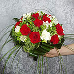 вариант - классический небольшой букет из роз. В составе букета могут быть не