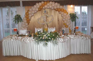 Начнем, с оформления банкетного зала, где будет проходить торжество по случаю
