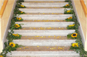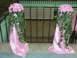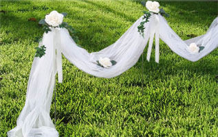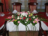 Цветами можно также украсить спинки стульев и потолок. На полу могут стоять