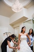 молодых, а позднее - помочь невесте переодеться, если новобрачные отправляются